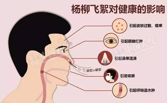 2、導(dǎo)致呼吸道疾?。毫跻鸬倪^敏主要發(fā)生在上呼吸道。柳絮被吸入鼻腔后,會(huì)引起強(qiáng)烈的刺激、流涕、咳嗽和哮喘等反應(yīng),如皮膚瘙癢、眼結(jié)膜發(fā)紅等,嚴(yán)重的還會(huì)影響睡眠。